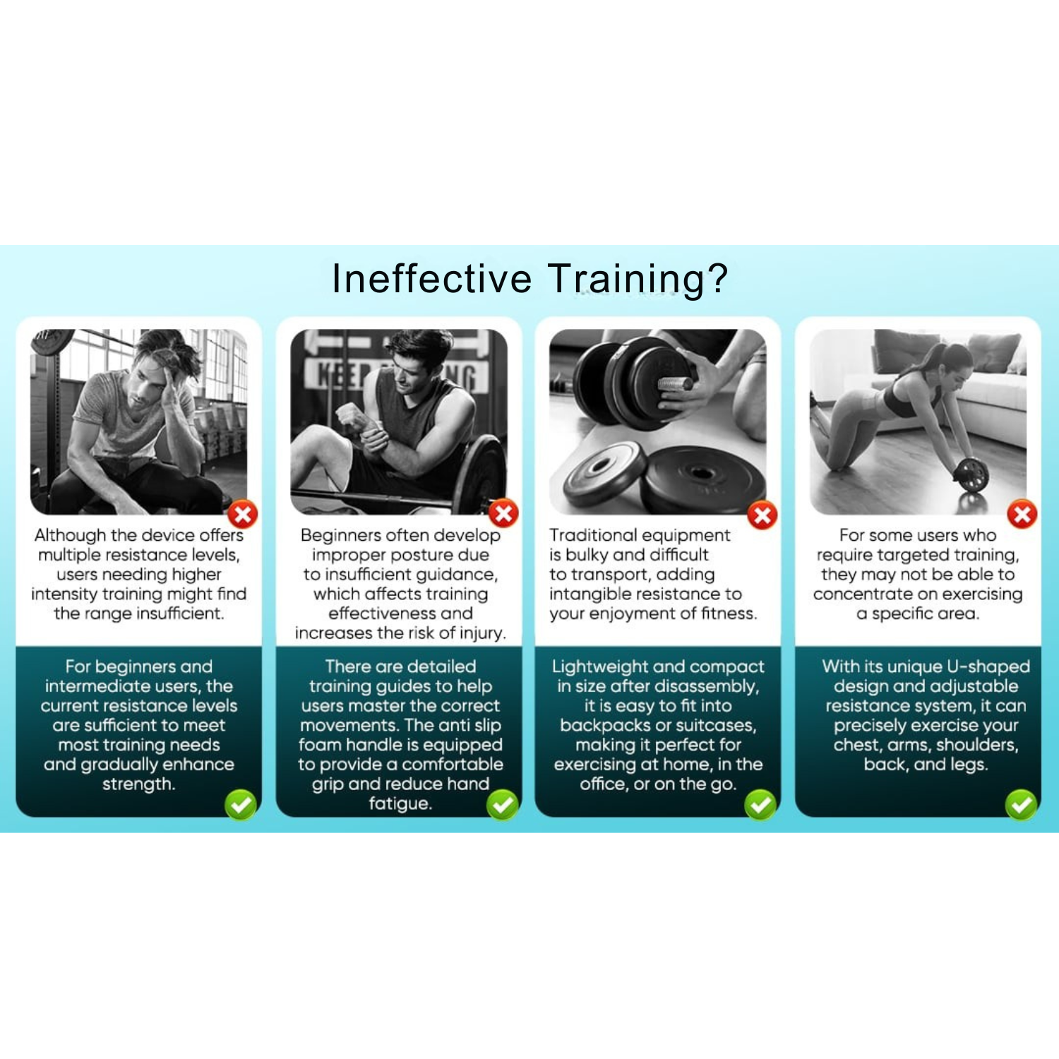 "I love how lightweight and easy to use this product is. I can’t believe I’ve been able to target all my muscle groups – chest arms legs you name it! The adjustable resistance makes it perfect for both warm-ups and intense training sessions."