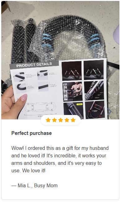 "I’ve been using this product for a few weeks now and I can already see a huge difference. As a beginner I was worried I wouldn't get the hang of it but the detailed guides made it super easy to follow. The resistance levels are perfect for my current fitness level and I feel stronger every day.